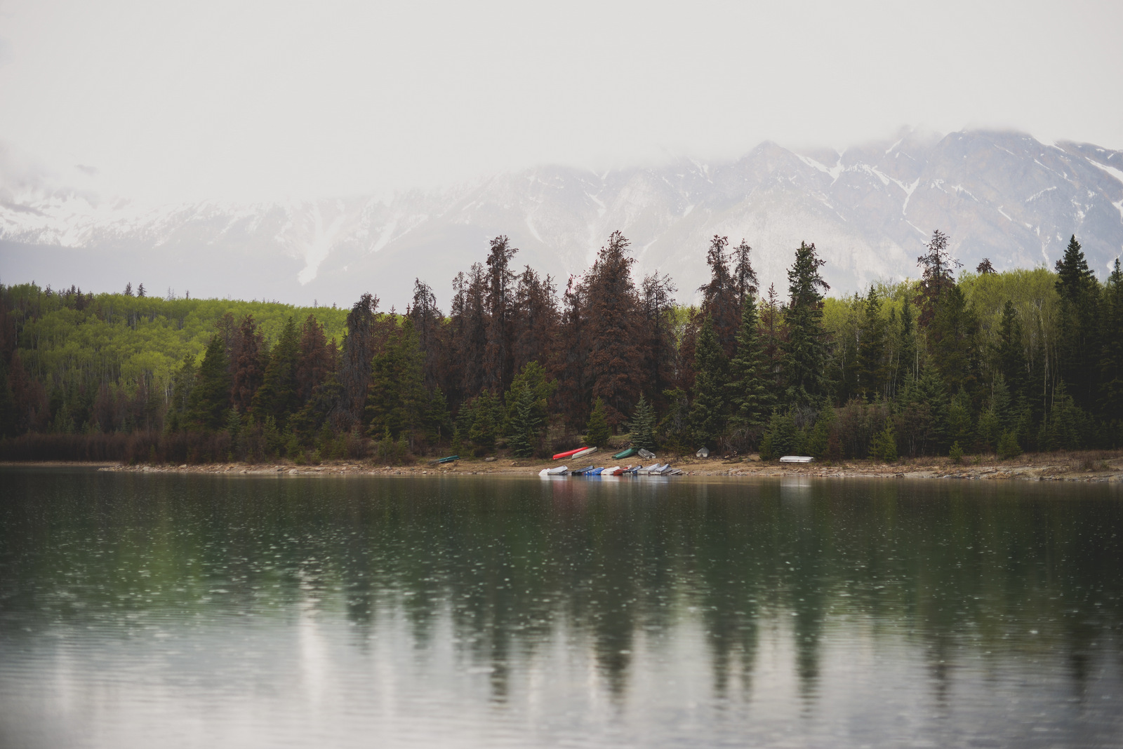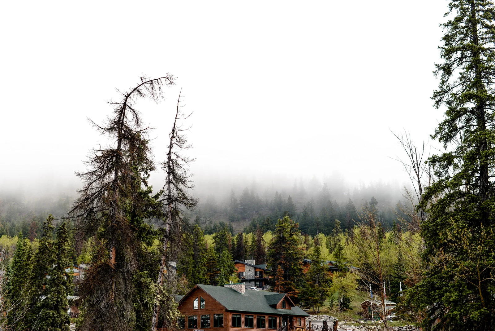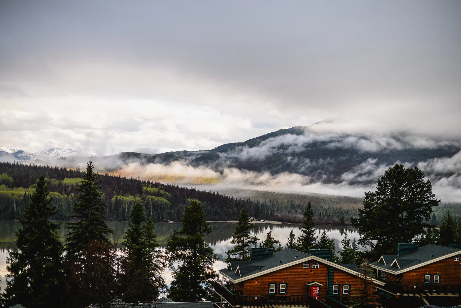 We were lucky to go before the weekend crowds, and before the prices of high season kicked in. All day there it rained, and it continued to rain when we arrived. Jasper is a four hour drive, give or take, from Edmonton so we had lots of time when we got there to wander around. We had umbrellas, and wore our toques. We spent some time in our room looking out the window and the view just so happened to be amazing.
