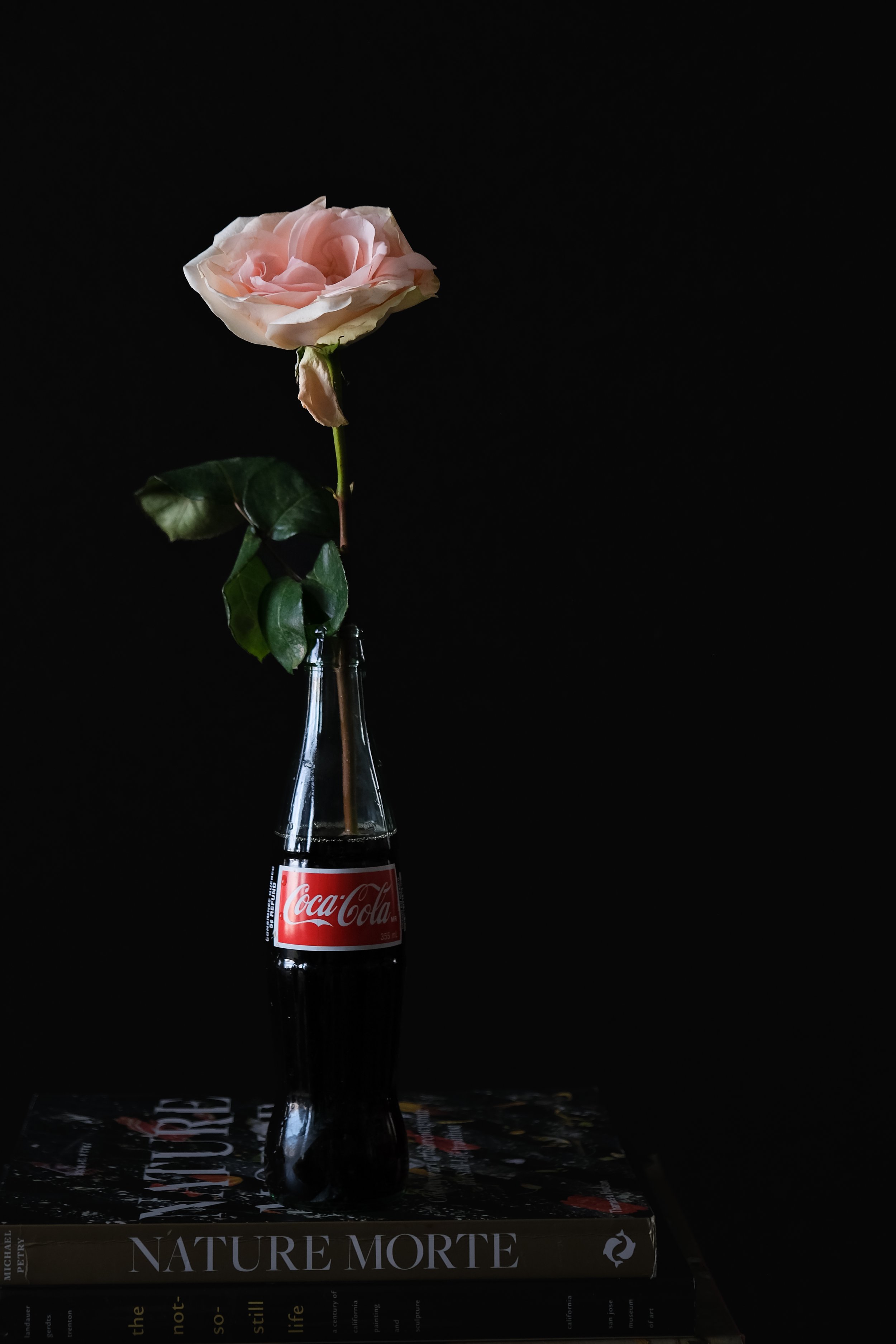 A lot of it comes down to play, and to turning things around, to see from another angle. To shift things. To pun and put together odd things. To juxtapose. When I took the photo of the rose in the coke bottle, I’d initially planned to drink the coke and then replace it with water. But then, it seemed like it would be more fun to put the rose into the coke. And then initially I put it on top of a book of women photographers, but then it seemed interesting to put it on top of the book nature morte. I took the photo one day with the bud of the rose quite closed up. The outer petals were quite muted. And then I cracked open another coke a couple of days later when the flower had opened. This is all fine, right? I find the photos amusing, if nothing else. But what happened next was that I came up with three new ideas for the book I’m writing. Coincidence? Maybe.