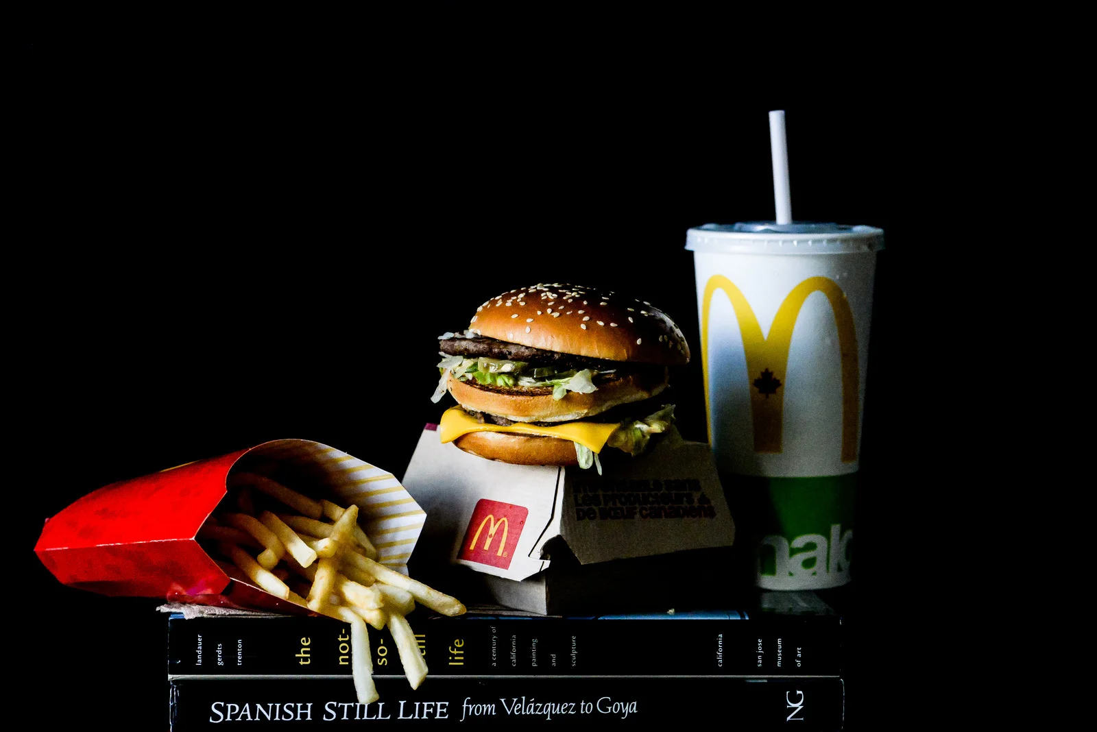 Still Life with Big Mac Meal, Cat, and Unwinding Lemon