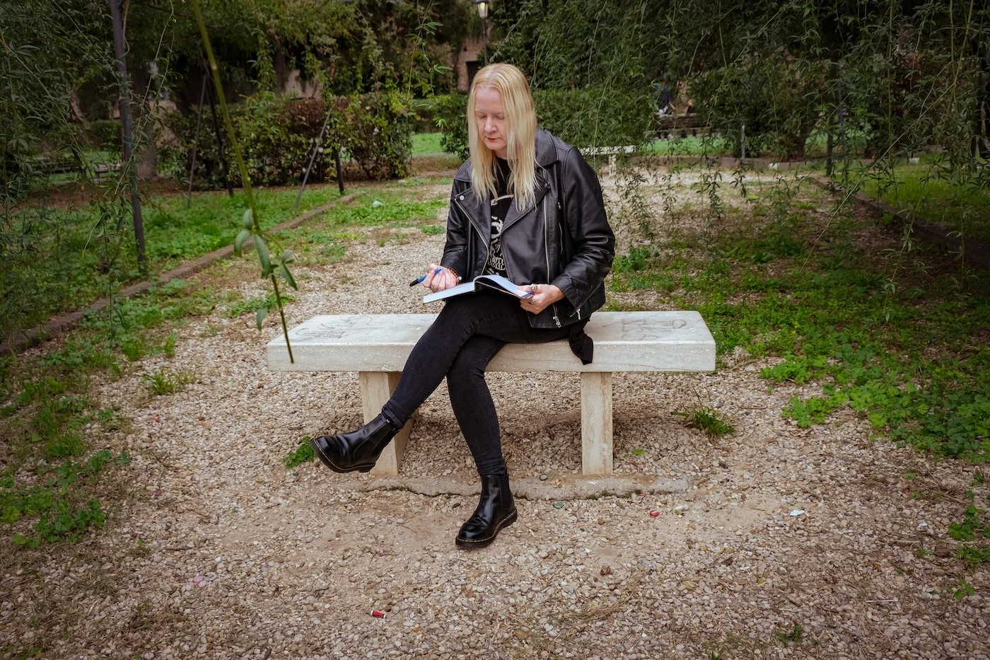 I’ve written and posted elsewhere about reading on holiday in Rome. In these photos I’m sitting in Colle Oppio and Terme di Traiano Park or Oppian Hill Park near our apartment which was near the Colosseum. Admittedly, I’m sort of “fake reading” for the photos here, but we actually did quite a lot of reading at the end of our days in that park. We’d stuff a couple of pillows and a blanket into our bag and head out with some books. When we were lucky we’d find a bench in the sun, but the pleasure of reading outside was so delightful in November and early December. I’m remembering those times with such intense fondness.