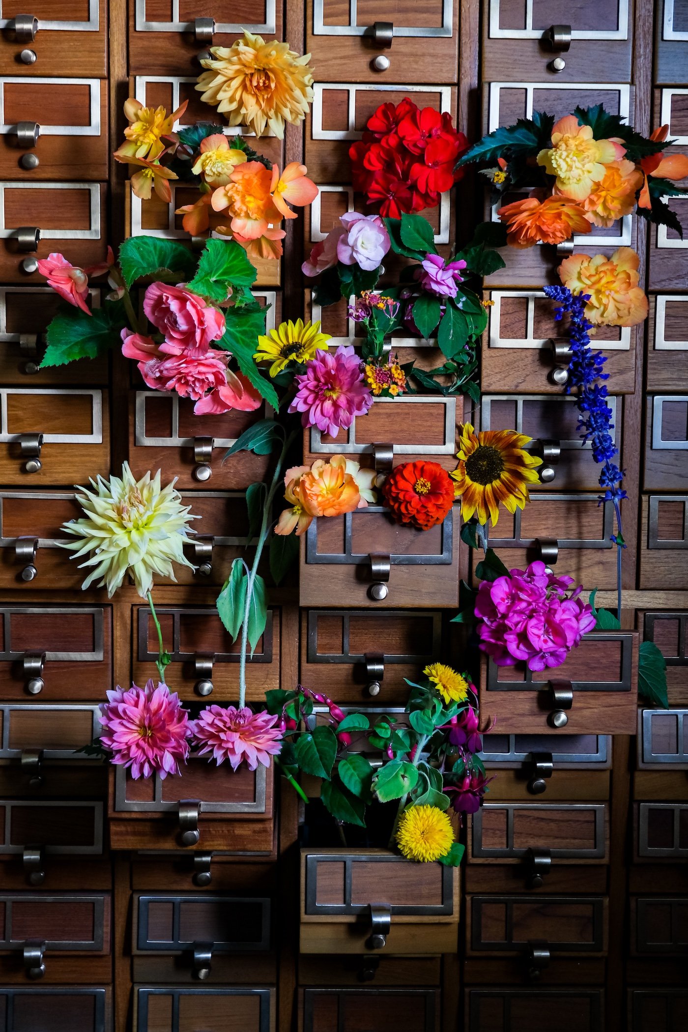 — It’s the season of the last bouquet, which is something I wrote about in my first book of essays from way back when, Calm Things. This year before making my last bouquets of the year, I decided I wanted to try something different and see what they’d look like in my card catalogue. Nice? I think. I’ve been thinking a lot about card catalogues of late and I think one might feature in my next book which I’ve just begun to dream about. A novel-ish sort of thing.