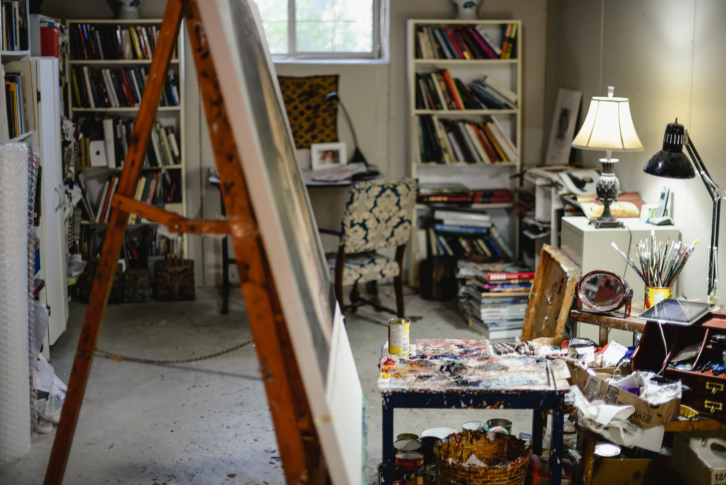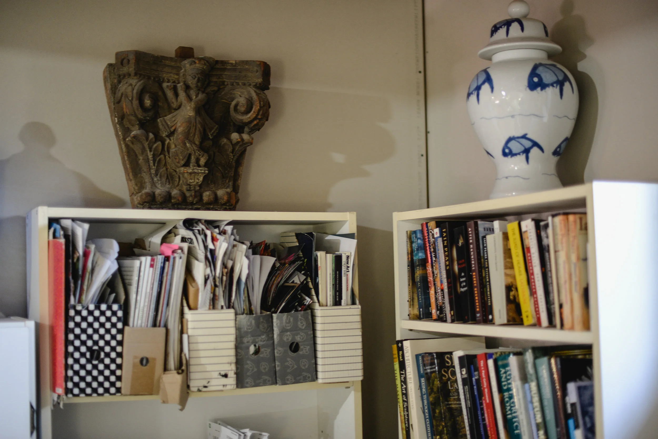 It's a work space. And there's evidence of his vast reading, and collecting, and thinking about art.