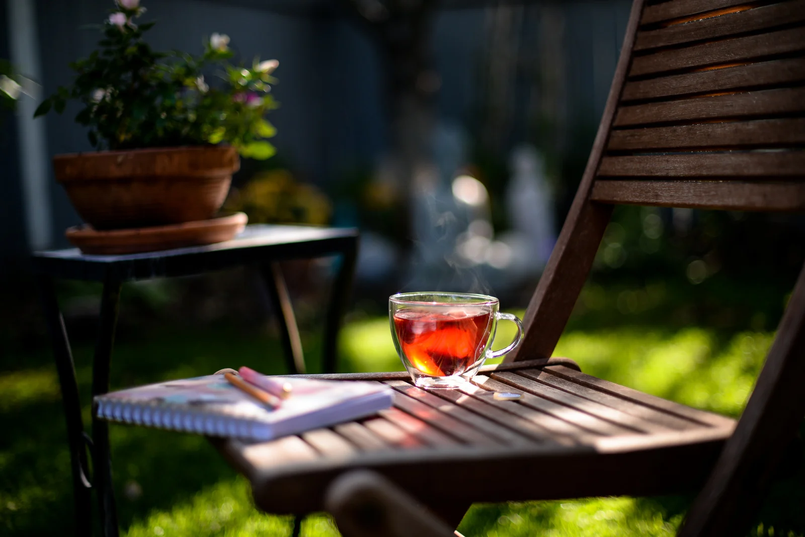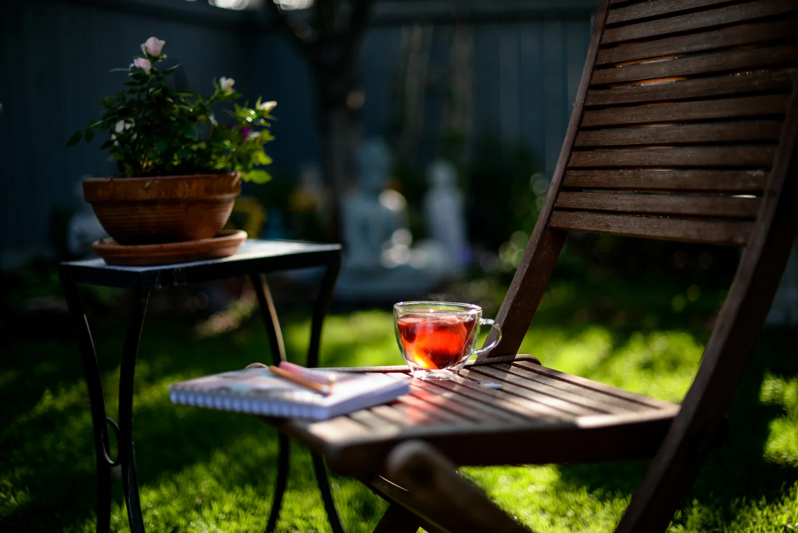 Today we shall take our tea in the little buddha garden in my backyard. We’ll read poems and sip pomegranate hibiscus tea.