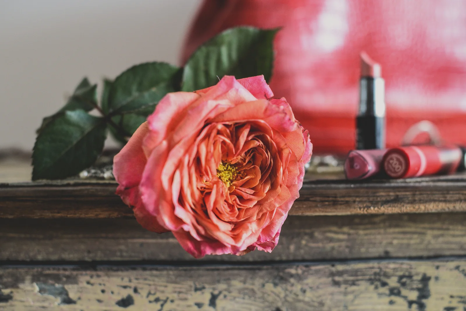 I started shooting just the flowers and the handbag, but began adding elements in hopes the image tells or hints at a bit of a story. Outside the frame you might imagine a woman getting ready to go out, somewhere lovely. You might imagine the scent of roses, some music playing in the background…