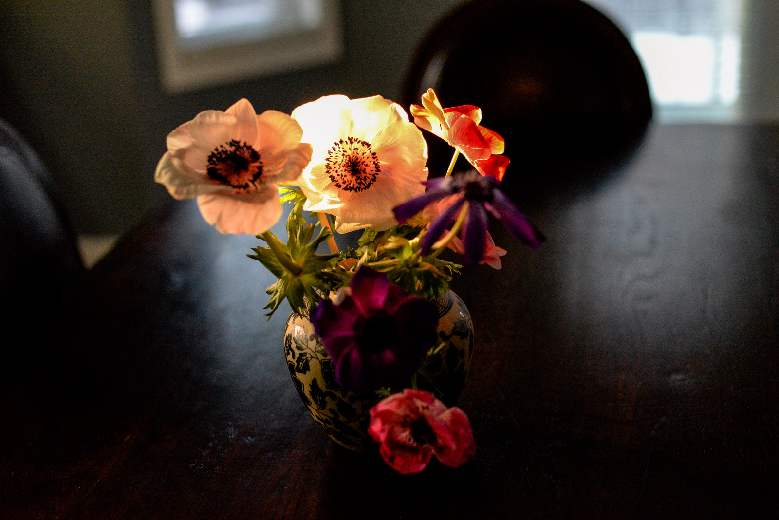 April is National Poetry Month, so perhaps March should be National Writing Poetry Month. It’s certainly the month for looking for flowers to warm ourselves! In my case, I will be buying them from the florist, or watching them appear on Rob’s canvases.