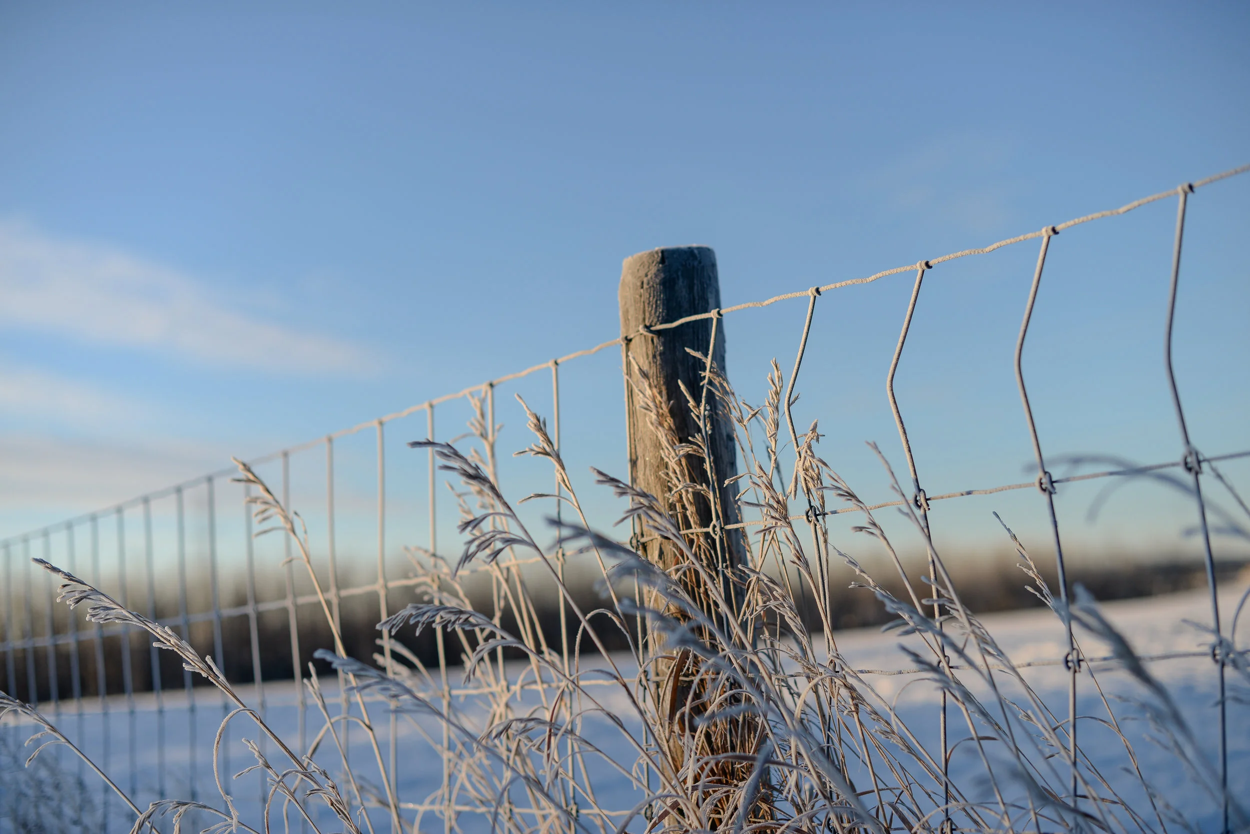 Today I praise frosty mornings, blue sky and a fence to walk along. I praise the bracing cold and the warm fireplace beside which I read poetry in the early darkness.